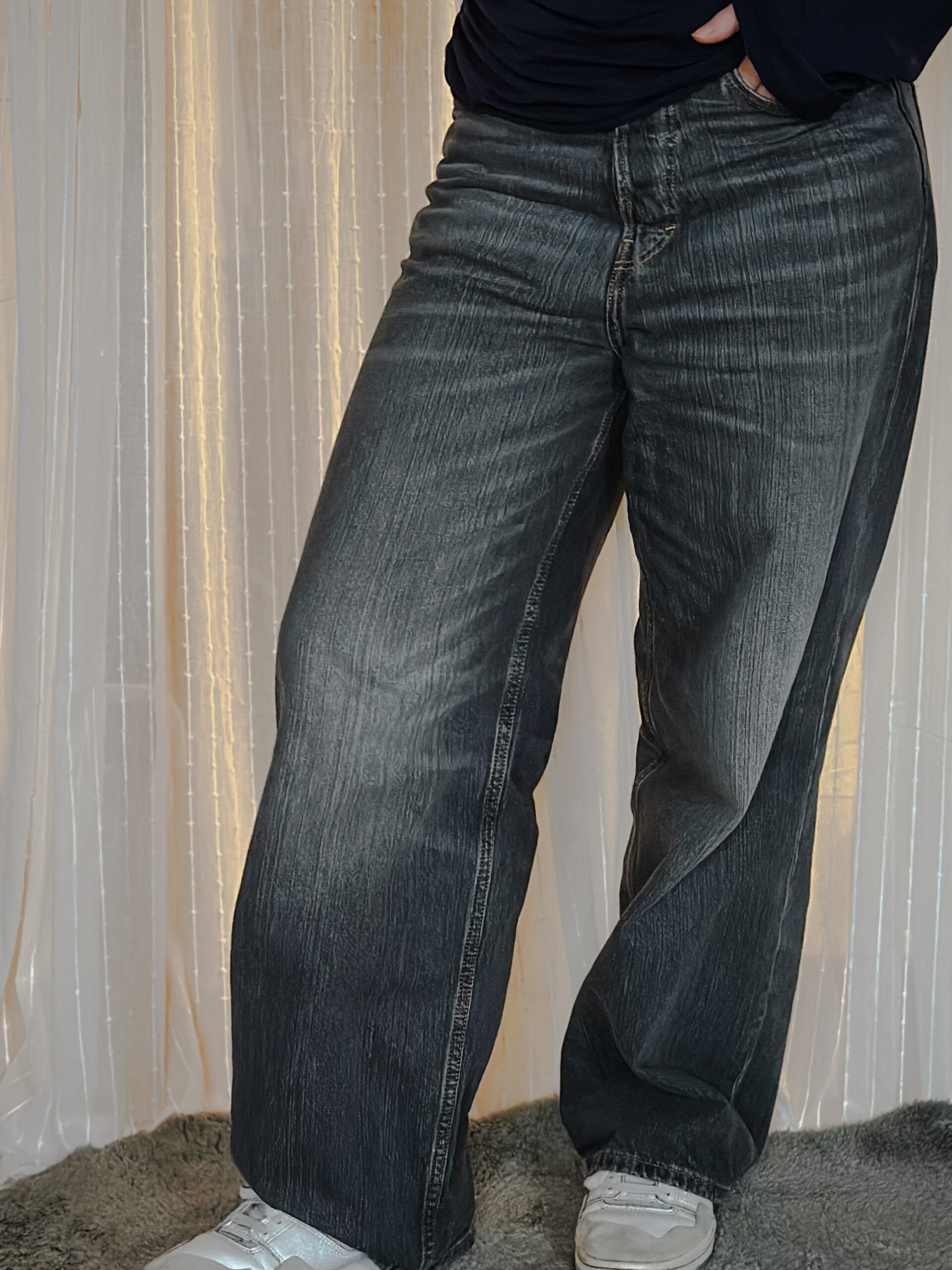 Baggy Unisex-Jeans in ausgewaschenem Grau. Hergestellt aus nachhaltig angebauter Bio-Baumwolle.